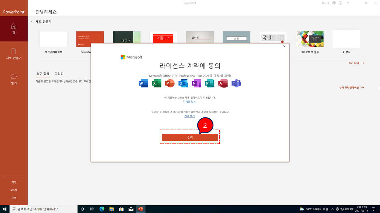 MS 오피스 2021 포함된 윈도우10 (21H1)