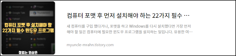철없는 외삼촌 블로그를 인포헬풀 이라는 새로운 이름의 워드프레스 블로그로 이전 하였습니다. 더 높은 퀄리티의 최신 IT 정보를 확인 할 수 있으니 많은 관심 부탁 드립니다. 그리고 유튜브 채널 컴테크에 접속하시면 블로그 정보를 영상으로 시청 하실 수 있습니다. 감사합니다.