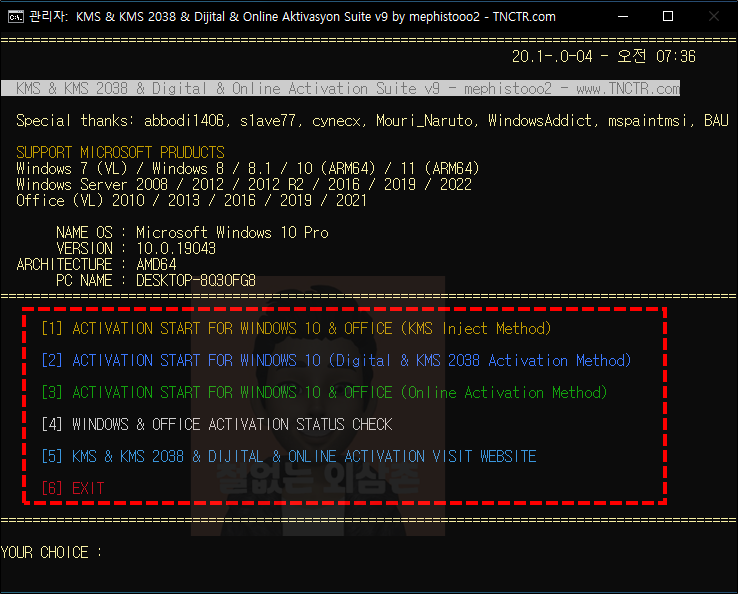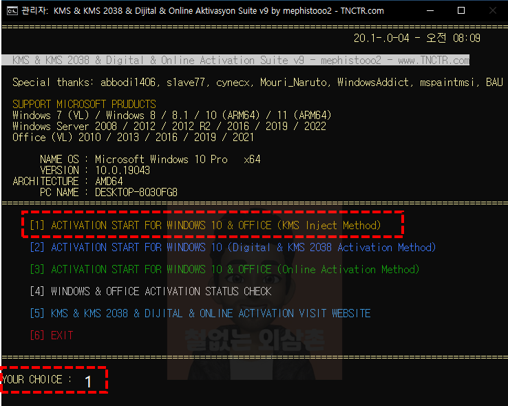 [1] Activation start for Windows 10 & Office ( KMS Inject Method )