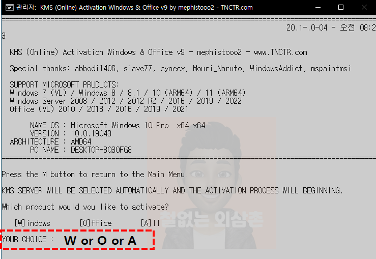 상세페이지로 이동해서 윈도우만 인증하려면 W, 오피스는 O, 둘다 인증하려면 A를 누르면 정품인증을 할 수 있습니다.