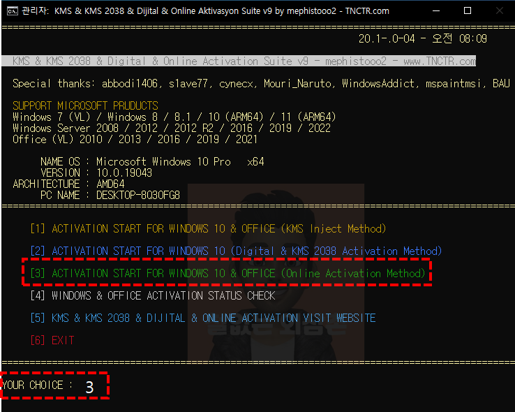 [3] Activation start for Windows 10 & OFFICE ( Online Activation Method )