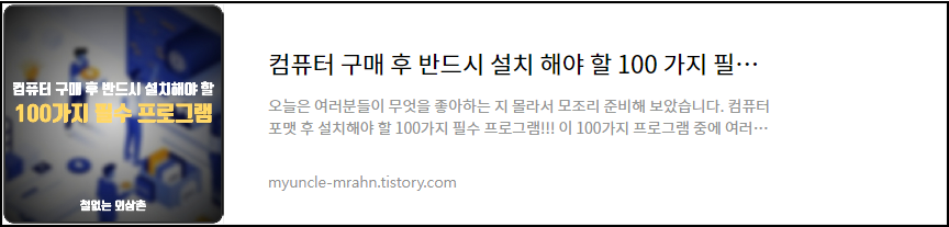 철없는 외삼촌 블로그를 인포헬풀 이라는 새로운 이름의 워드프레스 블로그로 이전 하였습니다. 더 높은 퀄리티의 최신 IT 정보를 확인 할 수 있으니 많은 관심 부탁 드립니다. 그리고 유튜브 채널 컴테크에 접속하시면 블로그 정보를 영상으로 시청 하실 수 있습니다. 감사합니다.