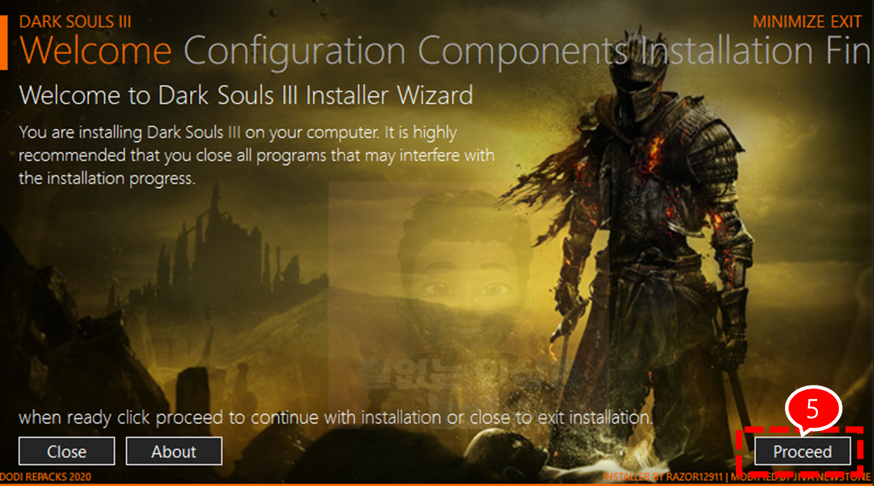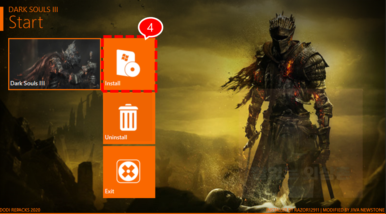 2️⃣ 다크소울 3 설치 팝업창이 뜨면 키보드의 위(up) 방향키(↑) 를 누릅니다.