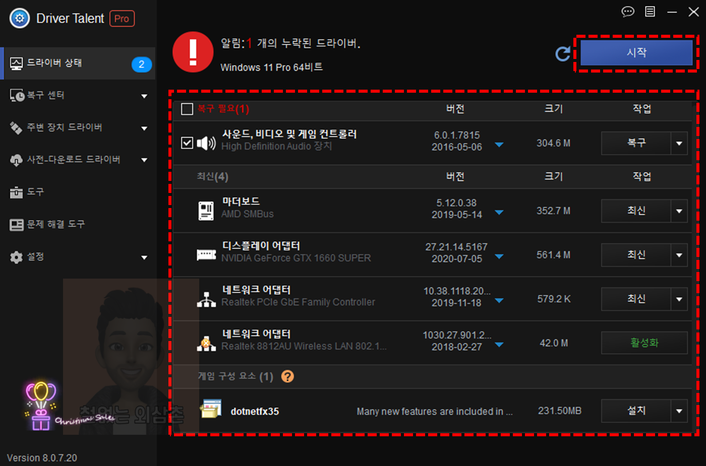 4️⃣ 원 클릭 수리 및 모든 드라이버 문제 수정 할 수 있습니다.