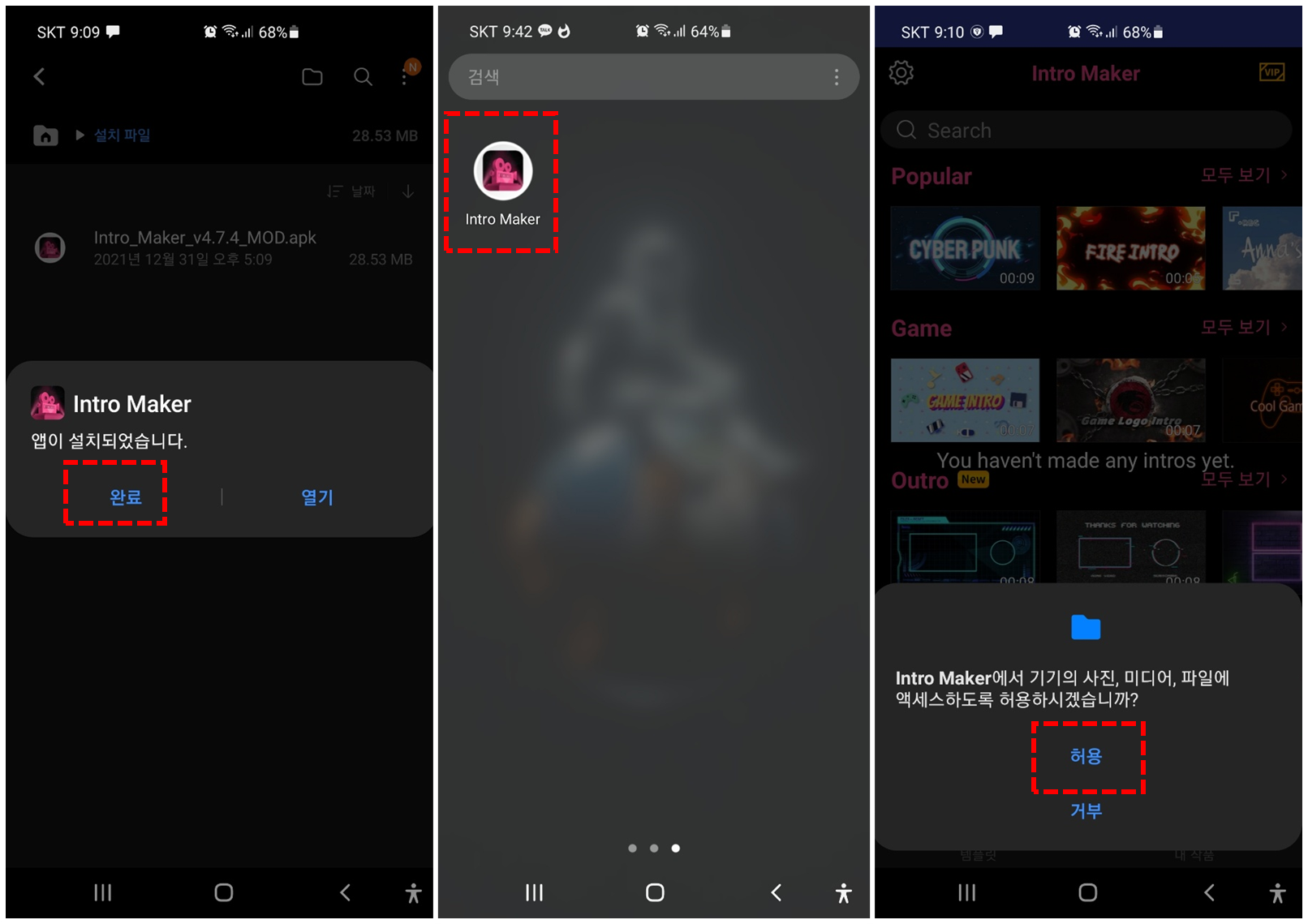 1️⃣ 아래 링크를 클릭하시면 Intro Maker 설치 APK 파일을 다운로드 받을 수 있습니다.