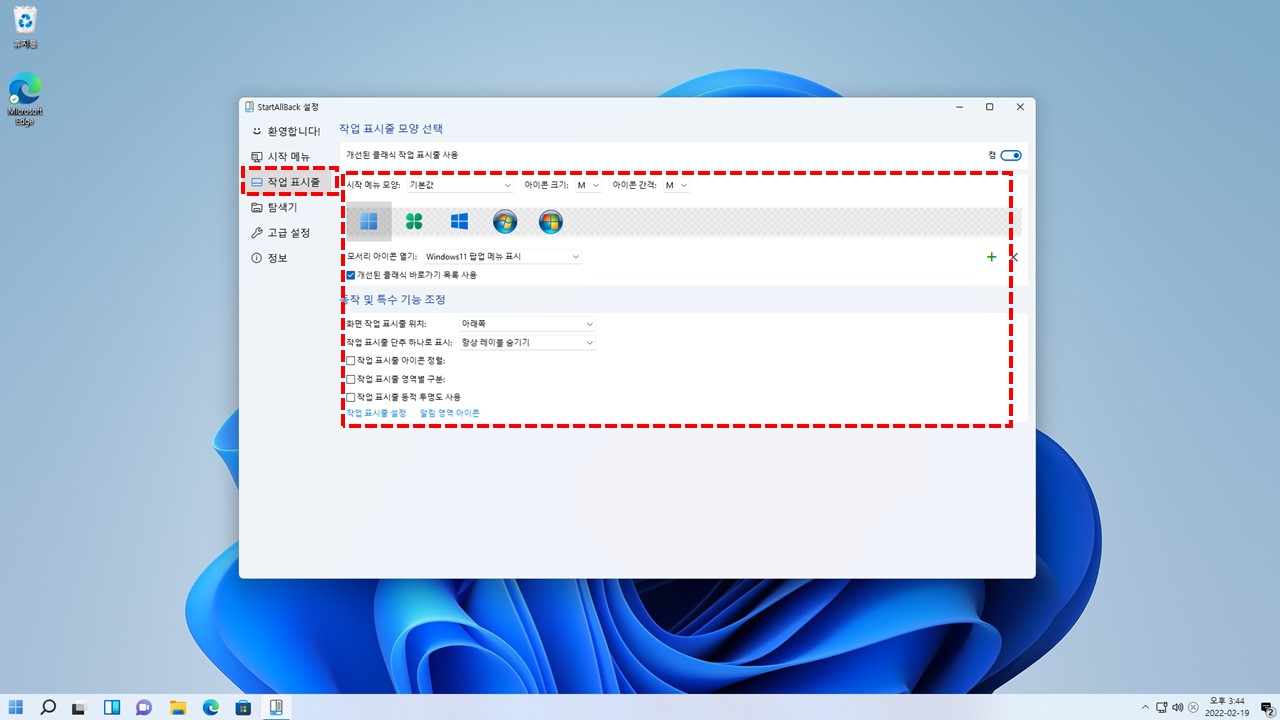 작업 표시줄 복원 및 개선