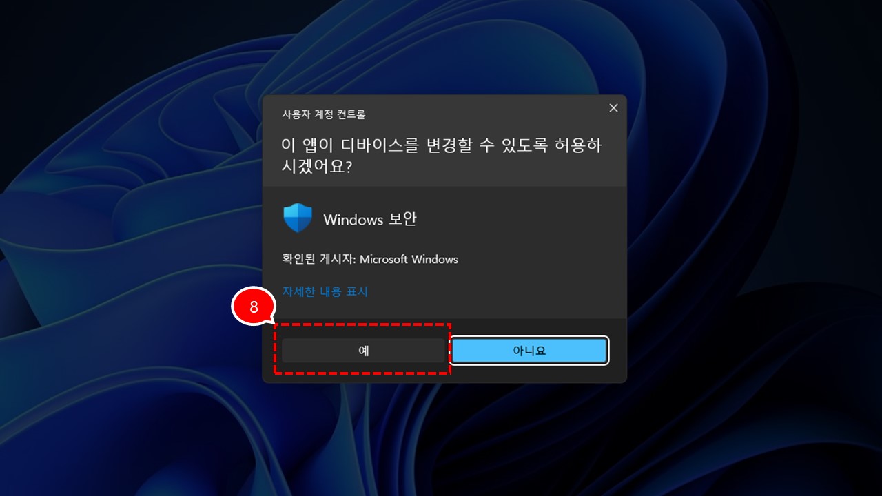 6️⃣ 디바이스 변경 팝업창이 뜨면 "예" 버튼을 클릭 합니다.