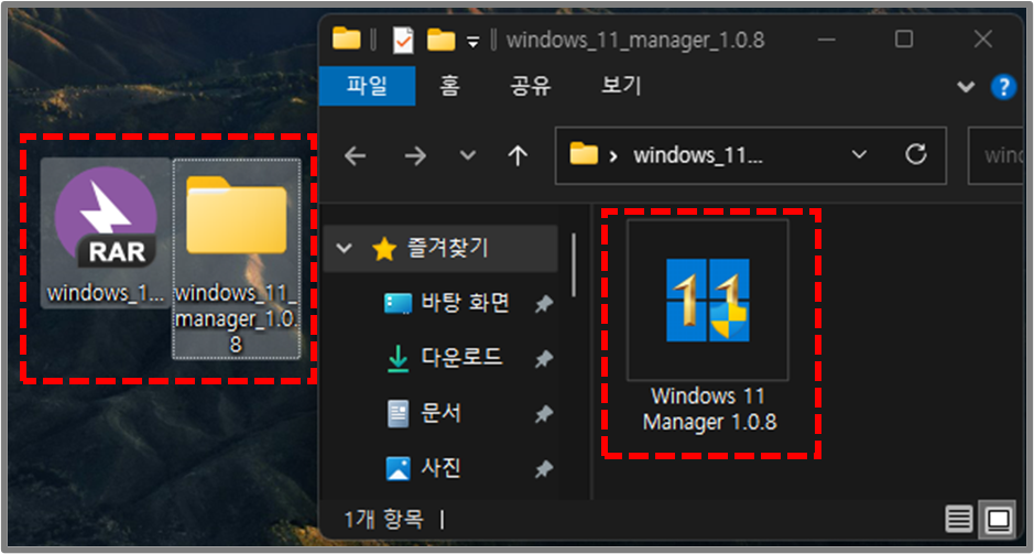 2️⃣ 다운로드 받은 파일을 압축 해제 후 생성된 폴더로 들어가서 Windows11 Manager 파일을 실행합니다.