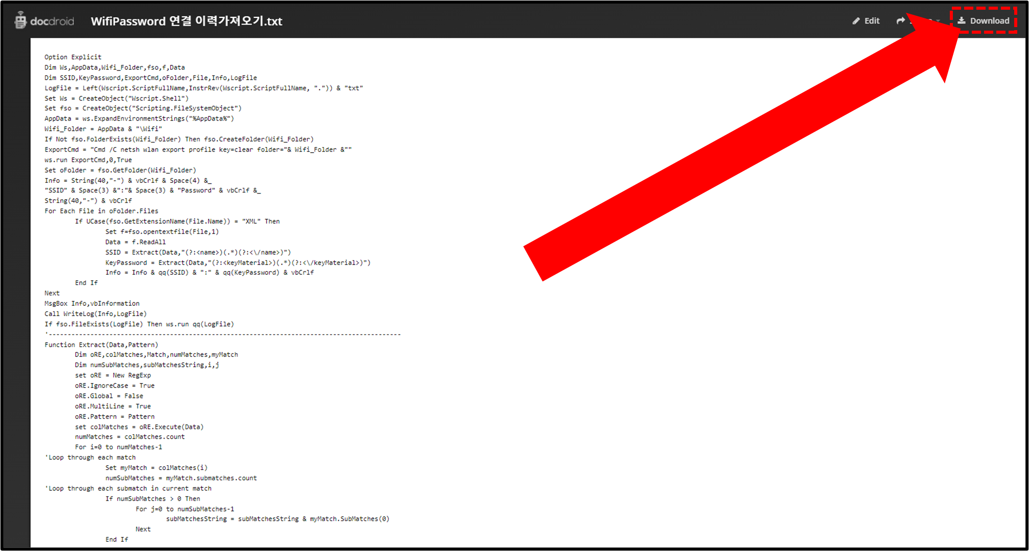 WIFI 비밀번호 목록 가져오는 스크립트 다운로드