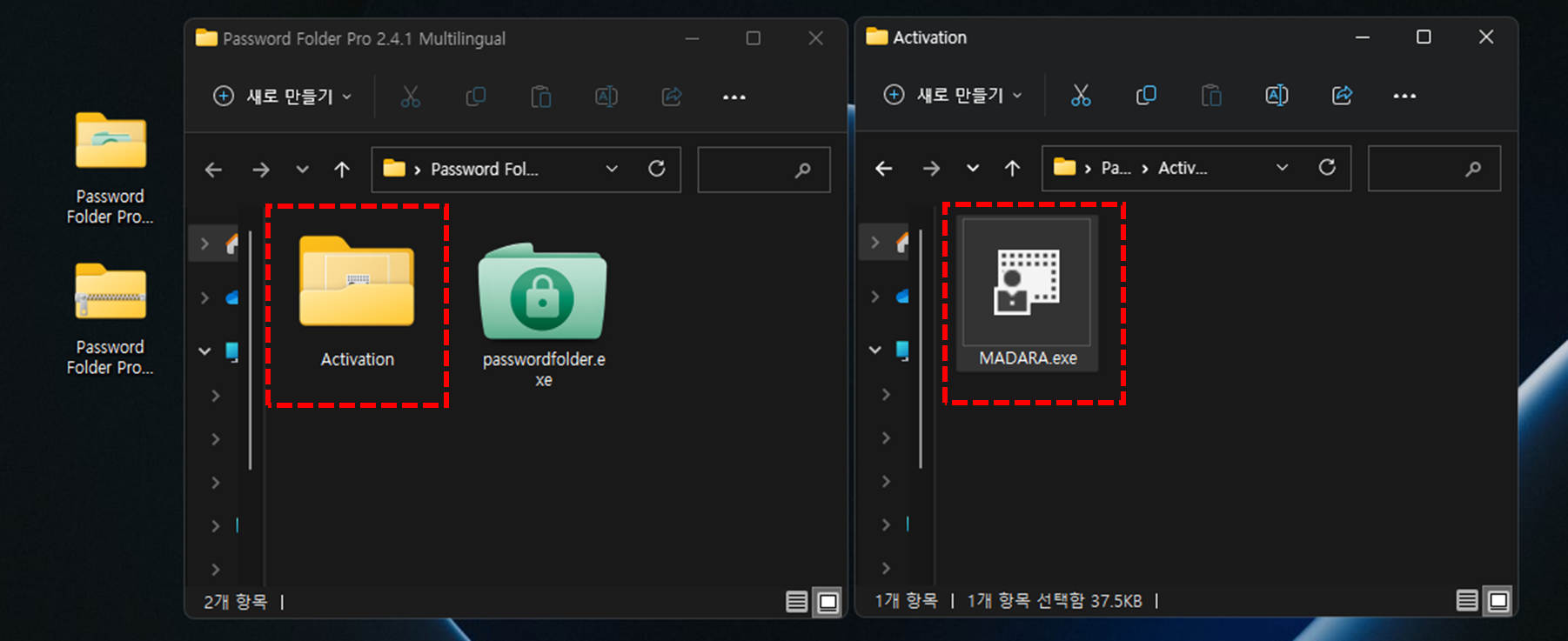 2️⃣ 다운로드 받은 폴더을 압축 해제 후 생성된 폴더로 들어가서 PasswordFolder.exe 파일을 실행 합니다.