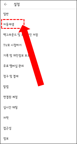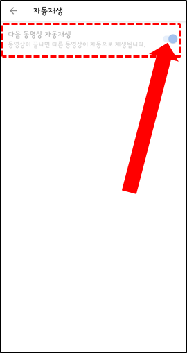 2. 자동재생 메뉴 선택 - 다음 동영상 자동재생 활성화 단추를 눌러 비활성화 시킵니다.